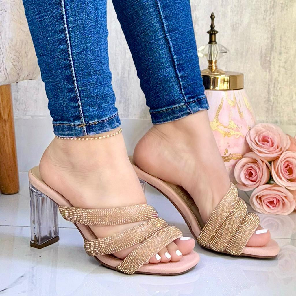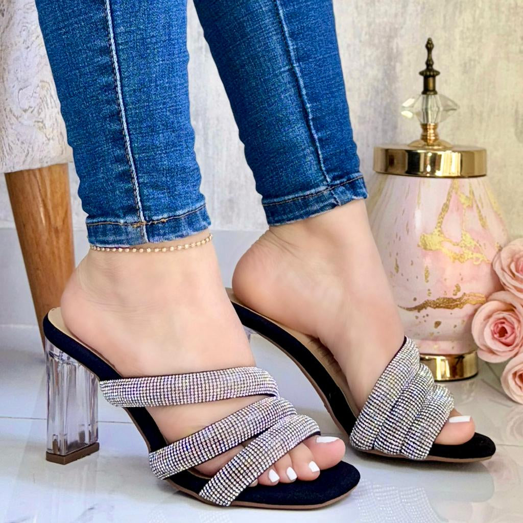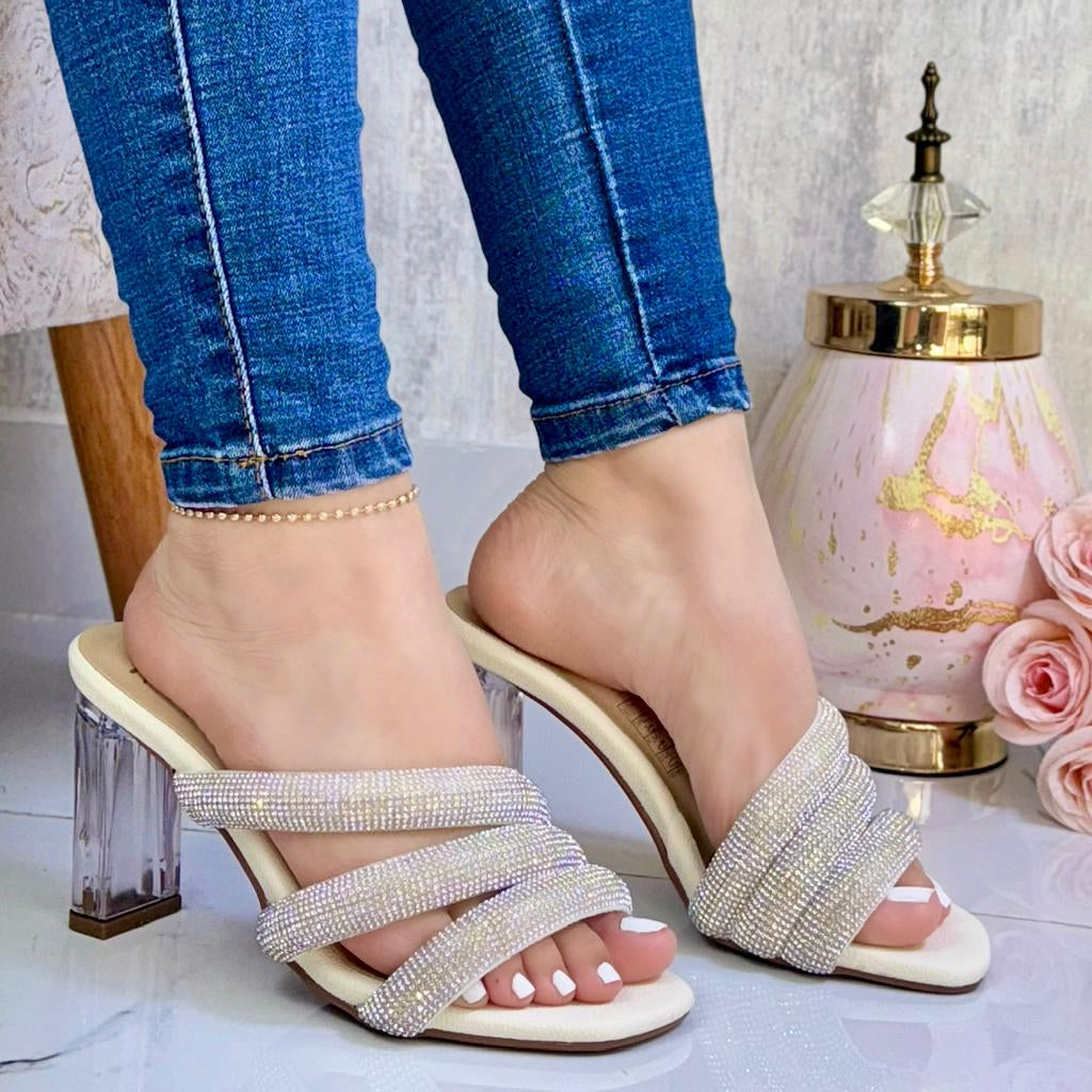 Este tacón de cristal de 7 ½ cm eleva tu estilo con elegancia y modernidad. Su capellada en delicado brillo capta todas las miradas, perfecta para ocasiones especiales o para darle un toque glamuroso a tu día a día.